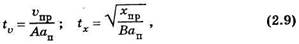 где tv — длительность переднего фронта воспроизводимого ударного импульса с учетом ограничения по предельной скорости подвижной части; tx — длительность переднего фронта воспроизводимого ударного импульса с учетом ограничения по предельному пути торможения. Максимальное ударное ускорение ах,v и длительность переднего фронта tх,v воспроизводимого ударного импульса, удовлетворяющего одновременно ограничениям по скорости и пути торможения ударного стенда, можно определить из зависимостей (2.9), приравняв длительности tv и tx: