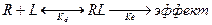 Неконкурентные антагонисты - необратимо изменяют сродство рецепторов к агонисту, связывание часто происходит не с активным участком рецептора, увеличение концентрации агониста не устраняет действие антагониста. Неконкурентный антагонист снижает Emax, не изменяет EC50, кривая «доза-эффект» сжимается относительно вертикальной оси. 36. Количественные закономерности действия лекарств. Закон уменьшения отклика биологических систем. Модель Кларка и ее следствия. Общий вид зависимости концентрация – эффект в нормальных и логнормальных координатах. Модель Кларка-Ариенса: 1. Взаимодействие между лигандом (L) и рецептором (R) обратимы. 2. Все рецепторы для данного лиганда – эквивалентны и независимы (их насыщение не влияет на другие рецепторы). 3. Эффект прямо пропорционален числу занятых рецепторов. 4. Лиганд существует в двух состояниях: свободном и связанном с рецептором. А) Б) Т.к. при возрастании количества лигандов в какой-то момент времени все рецепторы окажутся заняты, то максимально возможное количество образованных комплексов лиганд-рецептор описывается формулой: [RL] = [R] × Эффект определяется вероятностью активации рецептора при связывании с лигандом, т.е. его внутренней активностью (Ке), поэтому E = Ke×[RL]. При этом эффект максимален при Ке=1 и минимален и Ке=0. Естественно, что максимальный эффект описывается соотношением Emax = Ke×[Rобщий], где [Rобщий] – общее число рецепторов для данного лиганда Эффект зависит и от концентрации лиганда на рецепторах [С], поэтому E = Emax Из приведенных соотношений вытекает, что EC50=Kd