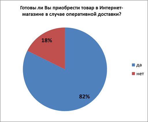 В случае оперативной доставки 82% процента опрошенных готовы заказывать одежду в интернете. 18% даже в этом случае делать заказ в Интернет-магазинах не готовы.