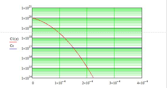 График распределения концентрации примеси в полупроводнике от времени при фиксированной температуре