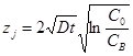 При диффузии примеси из поверхностного источника ограниченной мощности в полупроводник с противоположным типом проводимости, положение р-n перехода можно рассчитать по следующему выражению: