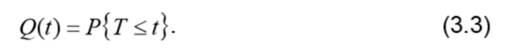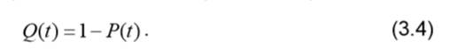 где N0 - начальное число исследуемых элементов; n(t) - число элементов, отказавших за время t. 2. Вероятность отказа Q(t) – это вероятность того, что в заданном интервале времени t произойдет хотя бы один отказ: Поскольку вероятность отказа и вероятность безотказной работы – события несовместные и противоположные, справедливо равенство: