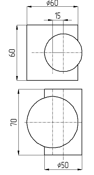 Линия пересечения поверхностей — это множество точек одновременно принадлежащих пересекающимся поверхностям. Линия пересечения поверхностей может быть: ломаная линия (если пересекаются гранные поверхности); несколько плоских кривых (если пересекаются гранная поверхность и повверхность вращения; пространственная кривая линия (если пересекаются поверхности вращения). Задача 8.1. Построить три проекции лини пересечения двух цилиндров.