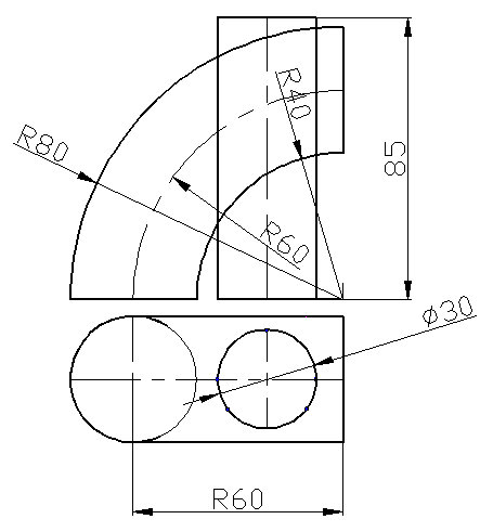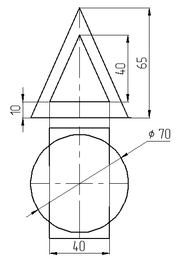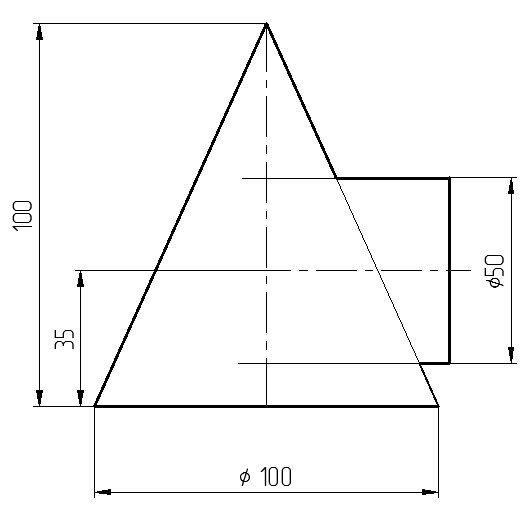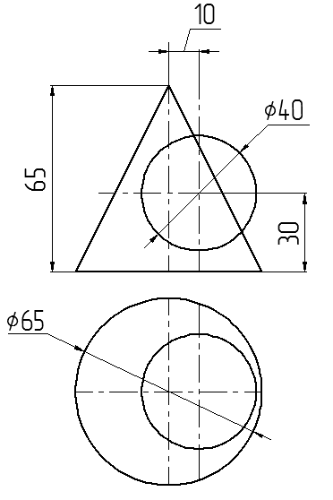 Рис. 32. Задача 8.7. Построить две проекции линии пересечения сферы диаметром 60 мми и конуса диаметр основания 80 мм, высота 90 мм (рис. 33).