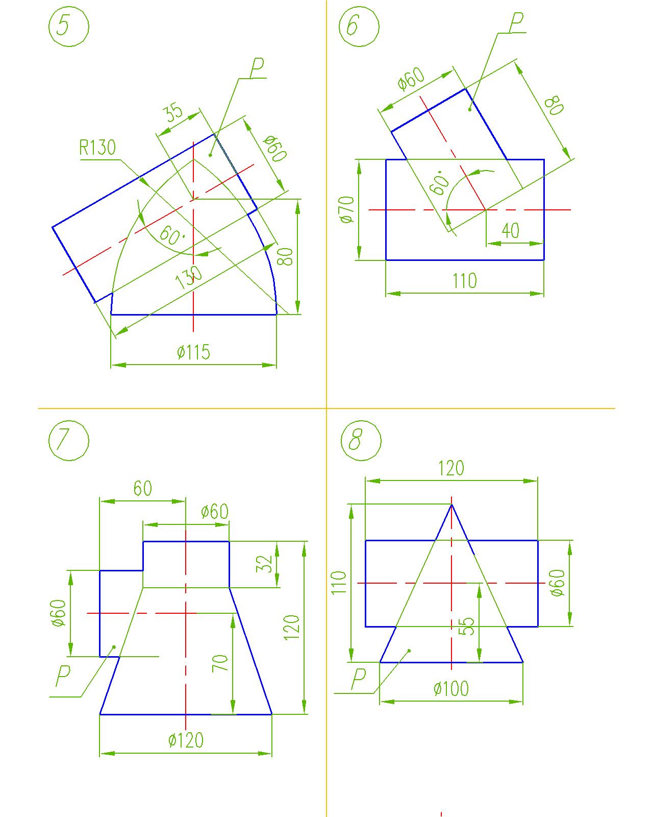Рис. 34. Задача 8.9. Построить одну проекцию линии пересечения поверхностей способом концентрических сфер и развертку поверхности обозначенной Р (рис. 35, 36, 37, 38).