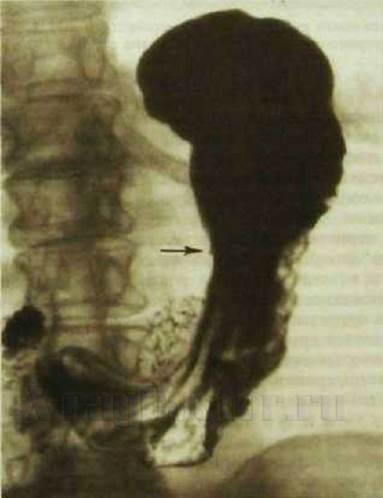 Фото рентгенограммы: малая углубленная раковая опухоль с небольшим изъязвлением (указано стрелкой) Date: 2015-07-01; view: 1483; Нарушение авторских прав |