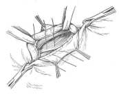 7. Пластика стенок пахового канала. В каждом конкретном случае хирург избирает нужный способ пластики и необходимый для этого шовный материал. Как правило, используют шелк №4 и 6. Некоторые хирурги применяют синтетические нити. Режущая игла должна быть достаточно крутой. 8. Послойное ушивание операционной раны. На поверхностную фасцию и подкожную клетчатку накладывают узловые швы из кетгута №2, на кожу - узловые шелковые швы.