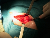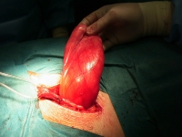 В зависимости от вида грыжи оперативные методики герниопластик несколько отличаются. Однако общие принципы схожи, поэтому мы не будем перечислять и описывать все возможные оперативные методики лечения различных грыж. Операции выполняются либо под общим наркозом (крупные послеоперационные и пупочные грыжи), либо под спинальной анестезией (паховые, бедренные грыжи). Первым этапом операции является доступ к грыжевому мешку посредством рассечения кожи и подкожной клетчатки. Далее хирург приступает к выделению грыжевого мешка (отделение от окружающих тканей). В случае с крупными послеоперационными и пупочными грыжами этот этап является наиболее трудоёмким и длительным по времени. А при выделении грыжевого мешка косой паховой грыжи необходимо аккуратно и скрупулезно отделять его от элементов семенного канатика: семявыносящего протока, артерии и вен. После выделения грыжевого мешка его содержимое вправляется в брюшную полость. В случае с косыми паховыми грыжами грыжевой мешок вскрывается, содержимое мешка вправляется в брюшную полость, а остатки мешка удаляются. Следующим этапом, от которого зависит радикальность операции, является непосредственно имплантация сетки. Вид и размер импланта подбирается в зависимости от вида грыжи и размера грыжевых ворот. Имплант расправляется в области грыжевых ворот и крепится к окружающим тканям швами или специальным клеем (Биоглю). При этом существуют различные методики расположения импланта над (onlay) и под (sublay) апоневрозом. Апоневроз – прочный соединительно-тканный элемент передней брюшной стенки, покрывающий большую поверхность, в том числе срединную линию и паховые области. При натяжных методах герниопластики апоневроз часто использовался для закрытия грыжевых ворот. После укрепления сетки в ряде случаев (крупные послеоперационные грыжи) требуется установка дренажей под кожу. Далее послойно ушиваются все ткани. Отличный косметический эффект дает наложение внутрикожного косметического шва в заключении герниопластики паховой грыжи. Фрагмент операции «Герниопластика косой паховой грыжи с помощью PHS-системы»