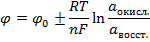 (разность равновесных потенциалов медного и цинкового электродов, опущенных в растворы их солей). Равновесный потенциал электрода зависит от измерения активности ионов, которыми этот электрод обменивается с электролитом: Уравнение Нернста