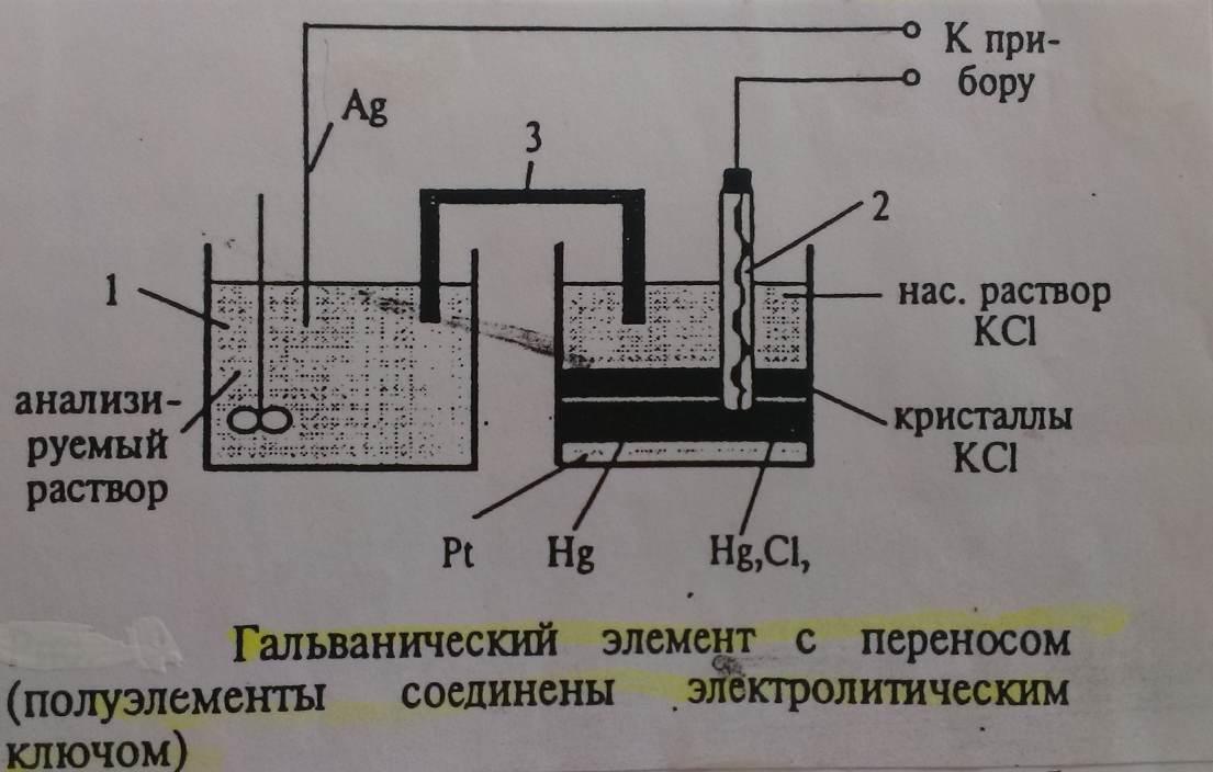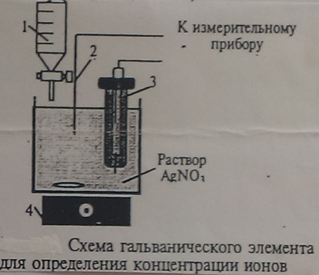 Для анализа разбавленного водного раствора нитрата серебра нужно собрать гальванический элемент, в котором индикаторным электродом является серебряная проволока, стащенная в раствор Ag Можно составить гальванический элемент, используя каломельный электрод сравнения. В нем роль электролитического ключа будет играть раствор КСl в каломельном электроде, который контактирует с анализируемым раствором через асбестовую ткань. В потенциометрическом анализе существует прямая потенциометрия и потенциометрическое титрование.