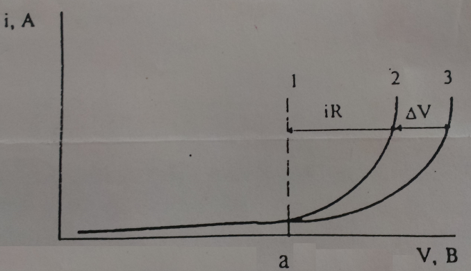 Для разряда каждого вида иона на электроде должен быть достигнут потенциал его выделения. Всегда на катоде электроны переходят к ионам, а на аноде - от ионов к электроду. Для прохождения постоянного тока через ячейку на ее электроды нужно подавать необходимое напряжение, определяемое по формуле: