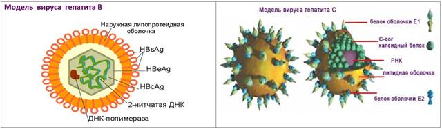Этиология парентеральных гепатитов В и С. Возбудитель гепатита В (ВГВ) – вирус гепатита В, относится к семейству гепаднавирусов, ДНК-содержащий. Состав вируса: наружная оболочка представлена HBsAg («австралийскийантиген» ), в ядре, помимо ДНК, имеются антигены – HBcAg, HBeAg, HBxAg. ВГВ обладает мутационной способностью. Вирус отличается чрезвычайно высокой устойчивостью к различным физическим и химическим факторам: низким и высоким температурам, многократному замораживанию и оттаиванию, УФО, длительному воздействию кислой среды. Во внешней среде при комнатной температуре вирус гепатита В может сохраняться до нескольких недель. В сыворотке крови при температуре +30°С инфекционность вируса сохраняется в течение 6 месяцев, при температуре −20°С около 15 лет; в сухой плазме — 25 лет. Инактивируется при кипячении, автоклавировании (120 ºС – 45 минут), стерилизации сухим жаром (180 ºС – через 60 минут), действии дезинфектантов. Возбудитель гепатита С – ВГС – мелкий РНК-содержащий вирус семейства флавивирусов. Содержит несколько антигенов. В ядре находится антиген – cor, в оболочке вируса – антигены Е1, Е2 (NS1), NS2, NS3, NS4 и NS5. На все эти антигены в организме больного вырабатываются антитела (анти-НСV), которые и определяются при исследовании крови. По классификации выделяют несколько генотипов вируса. В России чаще выявляются генотипы 1 (a и b), 2а и 3а. НСV относится к вирусам, для которых характерна очень высокая частота мутации. ВГС менее устойчив во внешней среде, по сравнению с ВГВ. При комнатной температуре вирус сохраняется в течение 16 дней, при температуре 37 ºС – 2 дня. Инактивируется при нагревании до 60-65 ºС через 4-8 минут, при дезинфекции.
