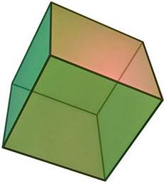 – правильный 6-гранник Более привычное название– куб. Он состоит из правильных четырёхугольников – квадратов. В каждой вершине сходятся 3 грани и 3 ребра. Сумма плоских углов при каждой вершине равна 270о.