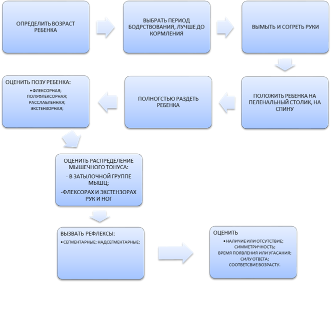Рефлекс Моро: ударить ладонью по поверхности на расстоянии 15-20см с двух сторон от головы ребенка.