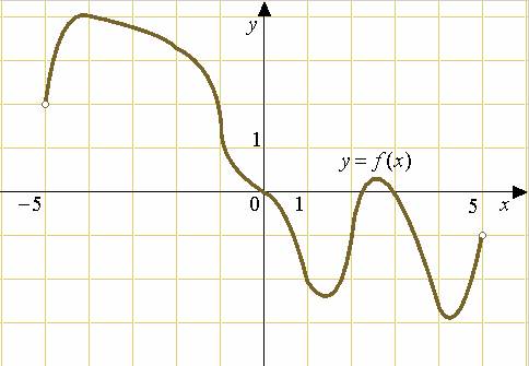 Если дан график производной, то интересовать нас будут только знаки функции и нули. Никакие «холмики» и «впадины» не интересуют нас в принципе! Задача 1. На рисунке изображен график функции, определенной на интервале. Определите количество целых точек, в которых производная функции отрицательна.