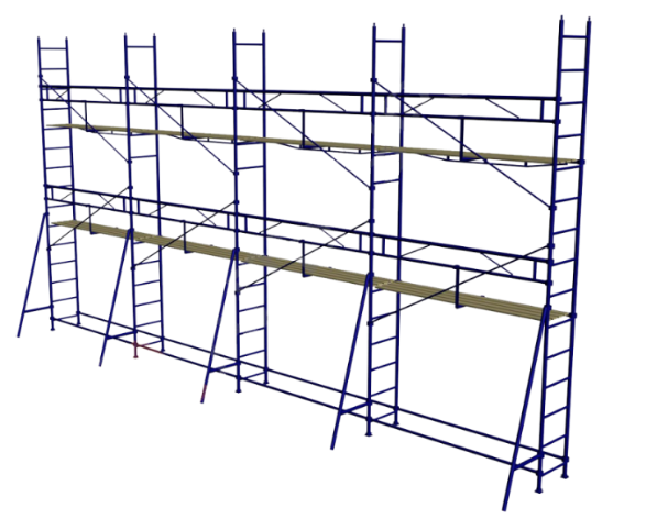 4.3.1 Область применения. Технологическая карта разработана на производство работ по устройству кирпичных стен с монолитными железобетонными поясами. Объект – газовая компрессорная Хабаровского НПЗ. Технологическая смена разработана на основе /34/ и /35/. Требуемая возможная поверхностная плотность лесов Pвозм, (кг/м2) рассчитывается исходя из производственной необходимости по формуле Pвозм = (mт.к. + mт.р. + mчел.)/(Lср.·B), (4.22) где mт.к. – масса тары с облицовочным кипричем, 200 кг; mт.р. – масса тары с кладочным раствором, 250 кг; mчел. – масса находящихся на приспособлениях людей, 180 кг; Lср. – средняя длинна монтажных участков по фронту работ, м; B – ширина подмащиваемого элемента, 1,5 м. Инвентарные подмости показаны на рисунке 4.1.