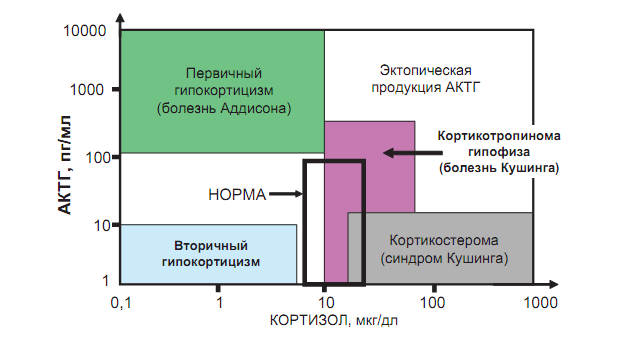 1.5 сурет. Бүйрек үсті бездері қызметінің бұзылуы кезінде АКТГ және кортизол деңгейін зерттеу нәтижелерін талдау