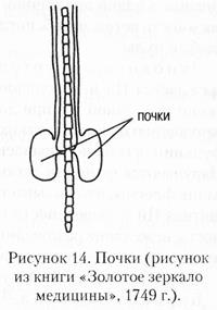 Почки расположены в поясничной области справа и слева от позвоночного столба, поэтому существует выражение «поясница — дворец почек». Относятся к элементу Вода, их канал наружно-внутренне связан с каналом мочевого пузыря.