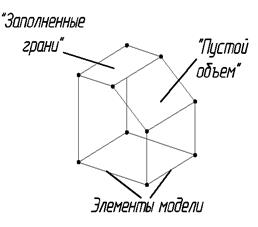 При использовании каркасных моделей в САПР необходимо учитывать следующие ограничения: · неоднозначность – отсутствие возможности однозначно оценить ориентацию и видимость граней, что не позволяет различать виды сверху и снизу, а также автоматизировать удаление скрытых линий; · приближенное представление криволинейных граней – невозможность точно описать криволинейные поверхности (цилиндры, конусы и др.), которые реально не имеют ребер; иногда для таких поверхностей вводят фиктивные ребра, располагаемые через регулярные интервалы; · невозможность обнаружить столкновения – отсутствие информации о поверхностях, ограничивающих форму, не позволяет обнаружить столкновения между объектами, что важно при моделировании роботов, проектировании планов размещения оборудования и т.д.; · погрешности оценки физических характеристик – возможность некорректного вычисления массы, центра тяжести, момента инерции и т.д., обусловленная недостатком информации об ограничивающих поверхностях; · отсутствие средств «затенения» поверхностей – у модели, состоящей только из ребер, невозможно произвести закраску поверхностей различными цветами. Поверхностное моделирование.