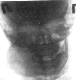 Рис. 12.33. Аневризмальная киста нижней челюсти. Рентгенограмма (ветвь челюсти вздута, кортикальная кость истончена).