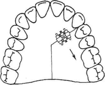 Рис. 13.60. Перемещение одного зуба или группы зубов в мезиальном направлении.