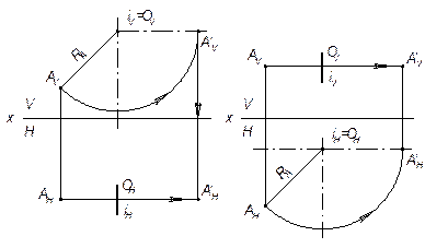 Рис 4.11. Вращение точки вокруг оси на юпюре