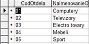 для этого в таблице tovar поле CodOtdela сделать поле со списком.