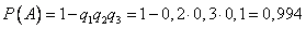 Пример. Вероятности попадания в цель при стрельбе из трех орудий таковы: p 1 = 0,8; p 2 = 0,7; p 3 = 0,9. Найти вероятность хотя бы одного попадания (событие А) при одном залпе из всех орудий. Решение. Вероятность попадания в цель каждым из орудий не зависит от результатов стрельбы из других орудий, поэтому рассматриваемые события Вероятности событий, противоположных событиям