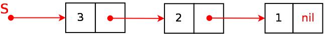 На этапе б) обращение к процедуре извлечения из стека дает число 2, на этапе в) – число 3. Опишем стек, в который можно помещать цепочку динамических переменных: Type stackp = ^stackcomp; stackcomp = record I: integer; P: stackp end; Var S: stackp; Если помещать в этот стек последовательность 1, 2, 3, то получится следующий вид: