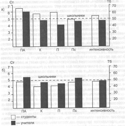 Рис. 63. Структура интенсивности отношения к природе: а) у студентов биологического факультета и учителей биологии; б) у студентов физико-математического и филологического факультетов и учителей небиологических специальностей. Если показатели студентов-биологов в среднем значимо превосходят показатели выборки школьников по перцептивно-аффективному, когнитивному и практическому компонентам, а также по интенсивности в целом, то показатели учителей-биологов — только по перцептивно-аффективному, значимо уступая школьникам по практическому компоненту. Все показатели у учителей биологии ниже, чем показатели у студентов-биологов, причем по когнитивному и практическому компонентам, а также по интенсивности в целом — статистически значимо. Date: 2015-07-01; view: 430; Нарушение авторских прав |