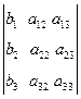 a21x1+ a22x2+a23x3=b2 a31x1+ a32x2+a33x3=b3 Мұндағы аij коэффициентері мен bi босмүшелері нақты сандар болсын. Мына белгілеулерді енгізейік