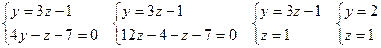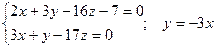 Мысал. Түзудің Жоғарыдағы екі жазықтықтың қиылысуы арқылы берілген тұзудің кез келген нүктесін табу үшін z = 0 деп аламыз.Сонда: