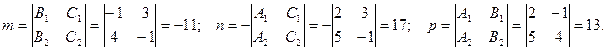 Түзуді екі жазықтықтыңтың қиылысу арқылы былай анықталады: Түзудің бағыттауыш векторы