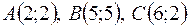 13) Төбелері нүктелерінде жатқан АВС үшбұрышының ВС қабырғасына параллель орта сызығының теңдеуін табыңдар