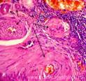 9. Состояние портальных трактов (не расширены, без признаков склероза и воспаления; с отёком стромы, расширены за счёт склероза, со слабой, умеренной, выраженной очаговой или диффузной лейкоцитарной или лимфогистиоцитарной инфильтрацией с единичными сегментоядерными лейкоцитами; отхождение от склерозированных портальных трактов фиброзных тяжей различной толщины и протяжённости).
