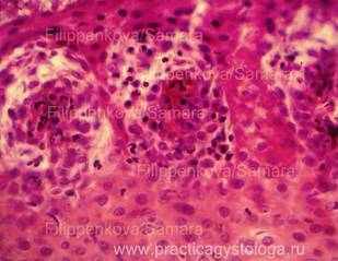 Пример№2 СТЕНКА ПИЩЕВОДА (1объект) - резко выраженное диффузное венозно-капиллярное полнокровие всех слоёв стенки пищевода, просветы сосудов расширены, переполнены кровью, с эритростазами, внутрисосудистым лейкоцитозом, пристеночным стоянием лейкоцитов, диапедезными кровоизлияниями. Слизистая оболочка резко утолщена, с очаговыми её некрозом и геморрагическим пропитыванием, лейкоцитарной инфильтрацией. Эпителиоциты слизистой оболочки резко набухшие. с выраженным просветлением цитоплазмы, в состоянии резко выраженной гидропической дистрофии. Подслизистая основа в состоянии резко выраженного отёка, с наличием сливающихся диапедезно-деструктивных кровоизлияний тёмно-красного цвета, с неравномерным гемолизом эритроцитов, лейкоцитарной инфильтрацией, распространяющейся на мышечную оболочку. Серозная оболочка в данных срезах не представлена.