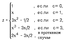 Задайте с помощью команд если или выбор вычисления по формулам:
