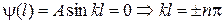За пределами ямы y(x) = 0. Поскольку функция y(x) должна быть непрерывна, то она должна обращаться в ноль на границах ямы y(0)= y(l)=0. Следовательно,