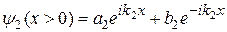 Падающая волна характеризуется амплитудой a 1, отраженная – b1, прошедшая – а2. Поскольку в области x > 0 имеется только прошедшая волна, то b2 = 0. Из условия непрерывности для y и y / в точке x = 0 следует