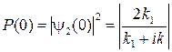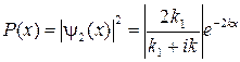 где i – мнимая единица, тогда плотность вероятности P(x) местоположения частицы в области II будет равна