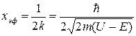 Частица массы m падает слева на потенциальный барьер высотой U. (рис. 7). Энергия частицы равна Е, причем Е > U. Найти эффективную глубину хэф проникновения частицы под барьер, т.е. расстояние от границы барьера до точки, в которой плотность вероятности P нахождения частицы уменьшается в е раз. Вычислить хэф для электрона, если U - E = 1,0 эВ.