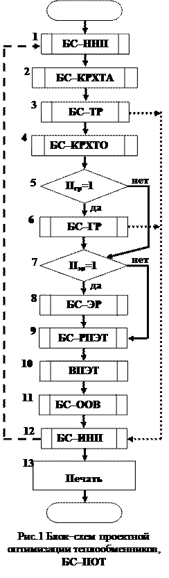 Алгоритмом ОКМО–2005 предусмотрено проведение следующих видов расчёта маслоохладителей (см. БС – ПОТ): 1. Формирование начального ННП и последующих ИНП наборов независимых переменных (см. Б1 и Б12 БС–ПОТ), выбор показателя эффективности теплообменника ВПЭТ (Б10 БС–ПОТ), оценка оптимальности текущего варианта ООВ теплообменника, т. е. поиск оптимального варианта из всех ранее рассмотренных – Б11 БС–ПОТ. 2. Конструкторский расчет характеристик теплообменного аппарата КРХТА (см. Б2 БС–ПОТ), т. е. величин, необходимых для последующих расчётов. 3. Тепловой расчет ТР теплообменника (см. Б3 БС–ПОТ). 4. Конструкторский расчет характеристик теплообменника КРХТО (см. Б4 БС–ПОТ). 5. Гидравлический расчет теплообменника ГР (см. Б6 БС–ПОТ). 6. Экономический расчет теплообменника ЭР (см. Б8 БС–ПОТ). 7. Расчёт различных показателей эффективности теплообменника РПЭТ (см. Б9 БС–ПОТ), выбор одного из показателей эффективности теплообменника ВПЭТ для последующего нахождения оптимума (см. Б10 БС–ПОТ) и оценка оптимальности перебранных вариантов ООВ (см. Б11 БС–ПОТ). Далее рассмотрим составляющего алгоритма ОКМО – 2005 подробнее. Date: 2015-07-01; view: 469; Нарушение авторских прав |