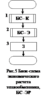 Обобщённая универсальная математическая модель процесса теплопередачи в теплообменниках с различными схемами тока сред (ОУММ…) создана при допущении постоянства условий теплопередачи в теплообменнике. Гидравлический расчет маслоохладителя. Этот расчет (см. рис.4) сводится к нахождению гидравлических сопротивлений ΔРт в трубах теплообменника (Б1), между трубами ΔРм теплообменника (Б3), проверке реальности их значений (Б2, Б4), расчёту мощности Nт и Nм нагнетателей трубной и межтрубной сред. Основная сложность этого расчёта содержится в определении ΔРт и ΔРм (здесь это не показано). Значения мощности Nт и Nм нагнетателей используются далее при подборе оборудования и в экономическом расчёте. Экономический расчет. При экономическом расчёте (см. рис.5) определяются необходимые для последующих оптимизирующих процедур значения капитальных вложений, эксплуатационных расходов, приведенных затрат, а также нужных для этого всех промежуточных экономических показателей. Ниже кратко показаны основные составляющие расчёта.