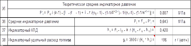 Таблица 9 - Индикаторные параметры расчетного двигателя