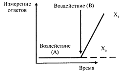 При использовании этого плана возникает закономерный вопрос: а сохранила бы кривая ответов прежний вид, если бы не было воздействия? Проще говоря, эта схема не контролирует эффект плаце-бо. Кроме того, неясно, что привело к эффекту: может быть, воздействие оказала не переменная В, а какая-либо иная, не учтенная в эксперименте. Поэтому чаще применяется другая схема: А — В — А. Первоначально регистрируется поведение испытуемого в условиях А, затем условия изменяются (В), а на третьем этапе происходит возвращение прежних условий (А). Изучается изменение функциональной связи между независимой и зависимой переменными. Если при изменении условий на третьем этапе восстанавливается прежний вид функциональной зависимости между независимой и зависимой переменными, то независимая переменная считается причиной, которая может модифицировать поведение испытуемого.