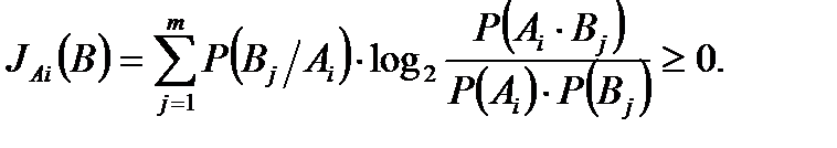Величину информации, содержащейся в состоянии Bj относительно состояния Ai, определяют по формуле:
