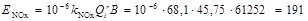 Масова витрата природного газу B = Bv r п = 84 762·103·0,723 = 61 252 т. Валовий викид оксидів азоту Показник емісії оксидів азоту (k NOx)0 без урахування первинних заходів згідно з даними таблиці Д.5 (додаток Д) дорівнює 150 г/ГДж. У таблиці Д.6 (додаток Д) емпіричний коефіцієнт z для природного газу становить 1,25. Відповідно до вихідних даних та згідно з таблицею Д.7 (додаток Д) ефективність первинних заходів зменшення викиду оксидів азоту h I становить 0,40. Азотоочисна установка відсутня, тому ефективність h II та коефіцієнт роботи b дорівнюють нулю. Показник емісії kNOx оксидів азоту