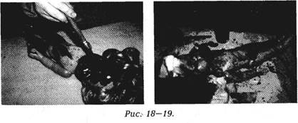 Рис. 17. Даша закрашивает кукле глаза. После этого она смыла краску с куклы, используя большое количество мыльной воды. Снова стала рисовать на кукле, сказав, что гениталии будут красными. Намочила тряпку в грязной воде, где ополаскивала кисточки, стала смывать ей краску с куклы. Фигура куклы при этом напоминала окровавленное тело (рис. 18—19).