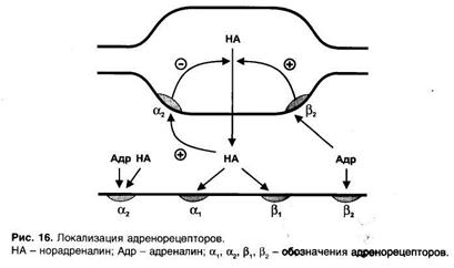 Основные эффекты возбуждения постсинаптических и внесинаптических адренорецепторов