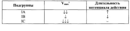 В волокнах рабочего миокарда предсердий и желудочков хинидин нарушает деполяризацию и ослабляет сокращения миокарда. Хинидин снижает возбудимость и увеличивает ЭРП волокон рабочего миокарда, что также препятствует патологической циркуляции импульсов. Хинидин расширяет периферические кровеносные сосуды (а-адреноблокирующее действие). В связи с уменьшением сердечного выброса и снижением общего периферического сопротивления сосудов хинидин снижает артериальное давление. Назначают хинидин внутрь при постоянной и пароксизмальной формах мерцательной аритмии предсердий, желудочковой и над-желудочковой пароксизмальной тахикардии, желудочковых и пред-сердных экстрасистолах. Побочные эффекты хинидина: снижение силы сокращений сердца, снижение артериального давления, головокружение, нарушение атриовентрикулярной проводимости, цинхонизм (звон в ушах, снижение слуха, головокружение, головная боль, нарушения зрения, дезориентация), тошнота, рвота, диарея, тромбоцитопения, аллергические реакции. Хинидин, как и многие другие противоаритмические средства, у части больных (в среднем у 5%) может вызывать сердечные аритмии — аритмогенное (проаритмическое) действие. Прокаинамид (новокаинамид) в отличие от хинидина меньше влияет на сократимость миокарда, не обладает a-адреноблокирующими свойствами. Препарат назначают внутрь, а в экстренных случаях вводят внутривенно или внутримышечно в основном при желудочковых, реже — при наджелудочковых тахиаритмиях (для прекращения трепетания или мерцания предсердий) и экстрасистолии. Побочные эффекты прокаинамида: артериальная гипотензия (связана с ганглиоблокирующими свойствами прокаинамида), гиперемия лица, шеи, нарушения атриовентрикулярной проводимости, тошнота, рвота, головная боль, бессонница. При длительном применении прокаинамида возможны гемолитическая анемия, лейкопения, агранулоцитоз, развитие синдрома системной красной волчанки (начальные симптомы — кожные сыпи, артралгия). Дизопирамид (ритмилен) назначают внутрь. Эффективен при предсердных и особенно при желудочковых тахиаритмиях и экстрасистолии. Из побочных эффектов выражено угнетающее влияние дизопи-рамида на сократимость миокарда и М-холиноблокирующее действие (мидриаз, нарушение ближнего видения, сухость во рту, констипация, затрудненное мочеиспускание). Противопоказан при глаукоме, гипертрофии предстательной железы, атриовентрикулярном блоке II—III степени. Препараты подгруппы IB - лидокаин, мексилетин, фенитоин в отличие от препаратов подгруппы IA меньше влияют на проводимость, не блокируют калиевые каналы («чистые» блокаторы натриевых каналов), не увеличивают, а уменьшают длительность потенциала действия (соответственно уменьшается ЭРП). Лидокаин (ксикаин) — местный анестетик и одновременно эффективное противоаритмическое средство. В связи с низкой биодоступностью препарат вводят внутривенно. Действие лидока-ина кратковременно (t1/2 1,5-2 ч), поэтому обычно растворы лидо-каина вводят внутривенно капельно. В волокнах Пуркинье лидокаин замедляет скорость быстрой деполяризации (фаза 0) в меньшей степени, чем хинидин. Лидокаин замедляет диастолическую деполяризацию (фаза 4). В отличие от препаратов подгруппы IA лидокаин не увеличивает, а уменьшает длительность потенциала действия волокон Пуркинье. Это свя